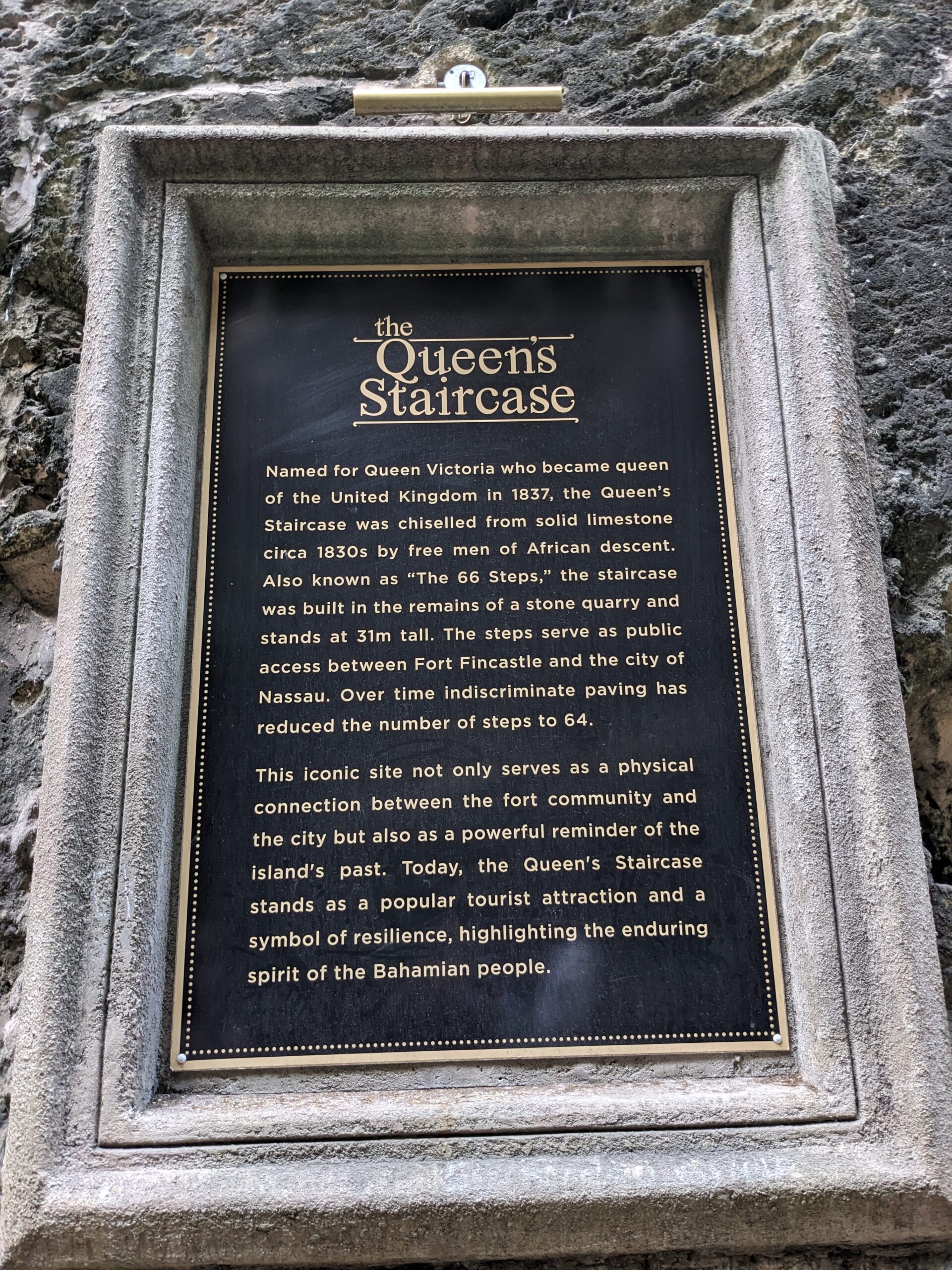 Since we have been to Nassau before, my only real goal of the day was to get a geocache since I hadn’t done one here previously. We headed to the Queen’s Staircase since it was somewhere we had not seen before and conveniently there was a geocache. It was a nice walk and we were rewarded with a neat little spot where the steps served as public access between Fort Fincastle and the city of Nassau. It didn’t take long for me to spot the cache. We then went to go check out Fort Fincastle (and go for another a cache) but we could only see it from the outside since it was closed for renovation.