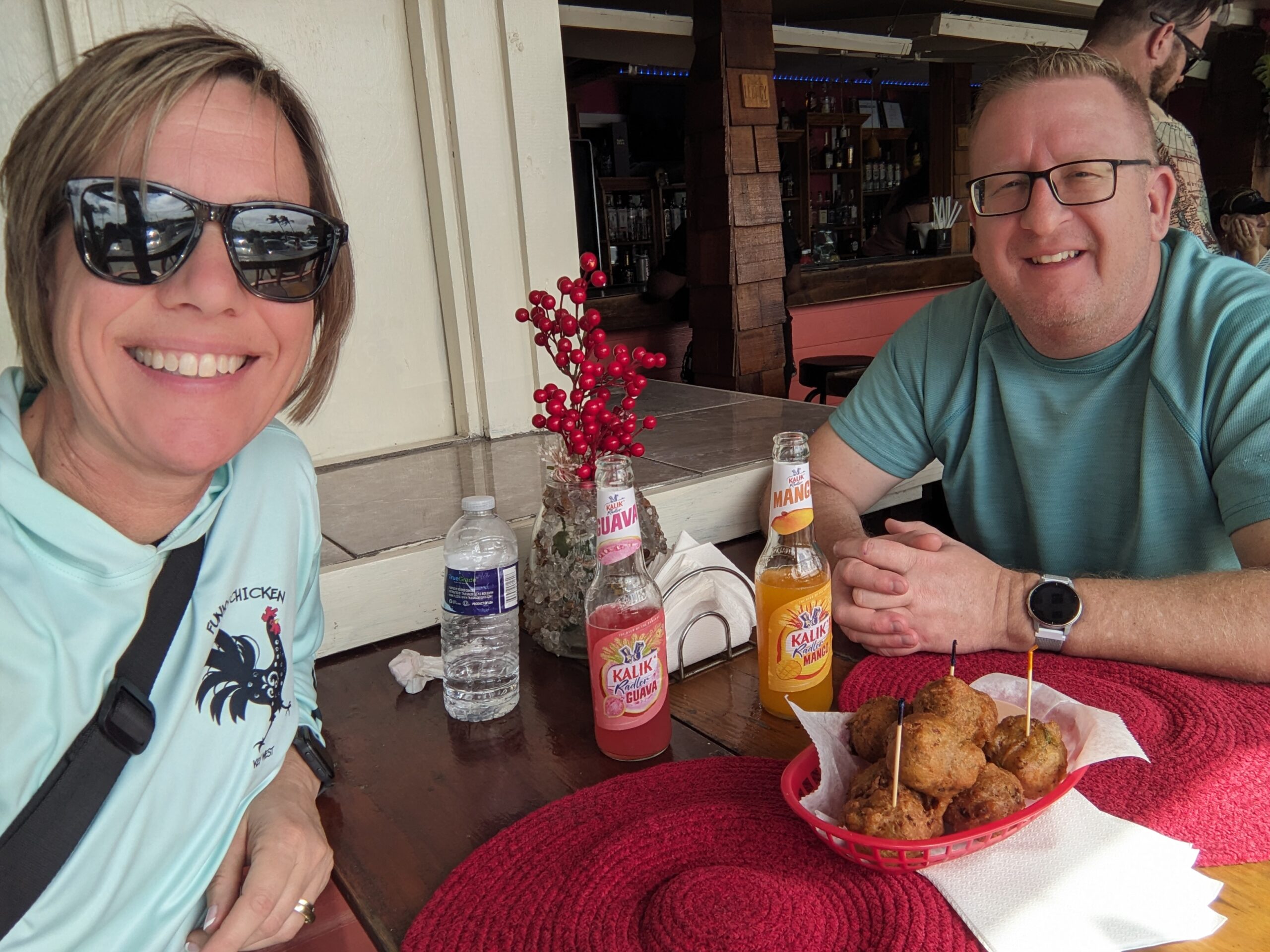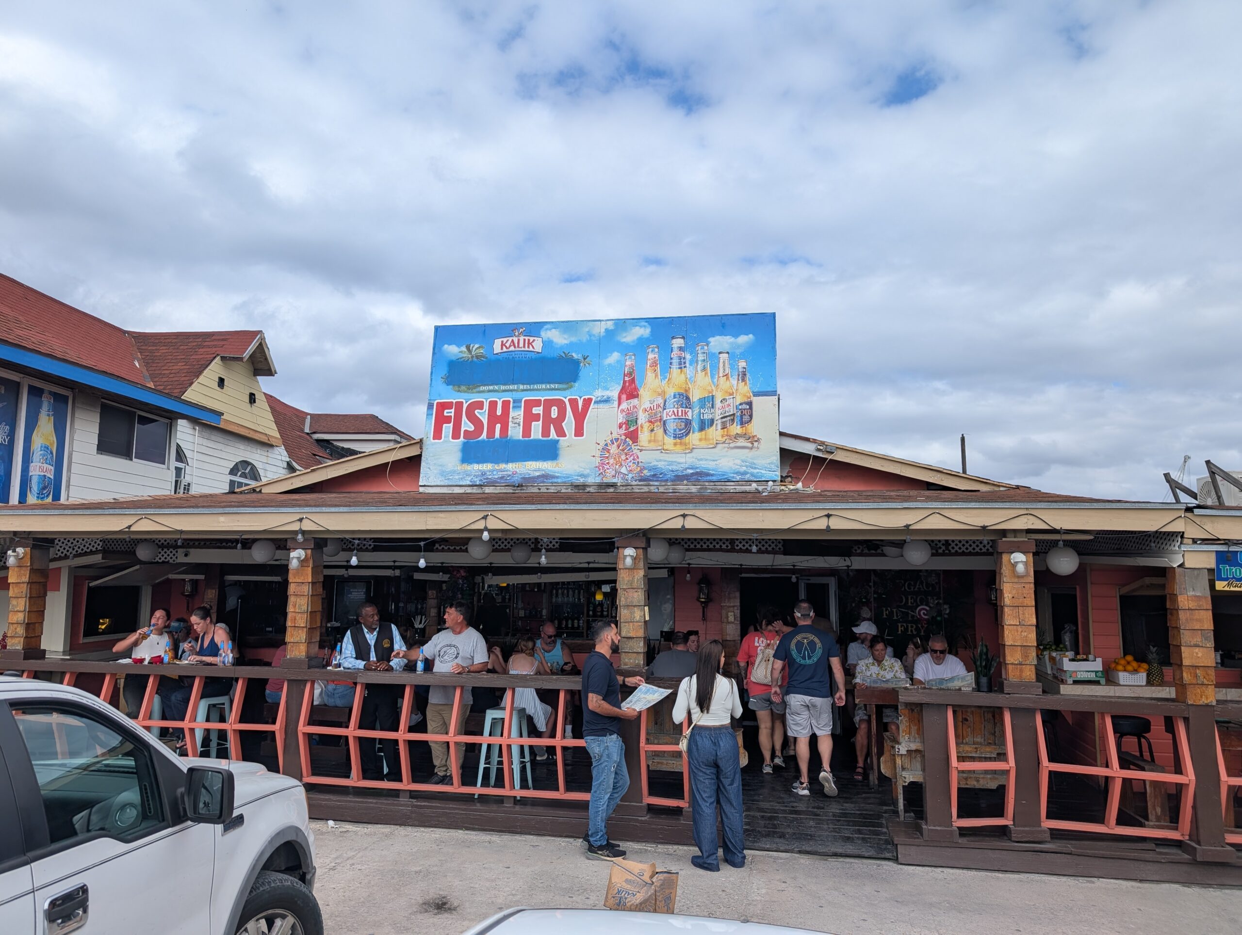 Upon leaving the beach we headed over to The Fish Fry area of Nassau to find a place to eat. We ended up choosing a place that didn’t have any reviews, but the ambience seemed right so we rolled the dice. We ordered the conch fritters and a drink and was not disappointed. The conch fritters were super delicious.