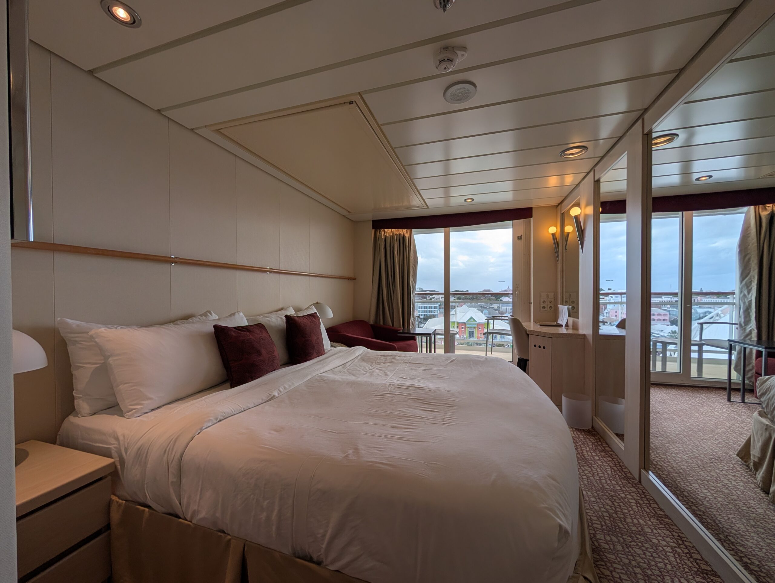 While we were out we talked about how nice it would be to have a balcony, if not for the sole purpose to feel the temperature. I did not originally book a cabin with a balcony because it was quite a bit more expensive than a room with a window, but now that we were here and the trip had already been paid for like a year ago, and we knew that the ship was only 75% full, I thought it could be worth asking the front desk how much it would cost to upgrade for the remainder of the trip. We took bets on how much it would cost and set a limit of $1000 for us to do it. As soon as we got back on board we went to the front desk to see if it was even possible and how much it would cost. We were both surprised when they came back and told us it would be $600. That was well below our self-imposed limit so we went for it! And now that we had a balcony room I probably will not be able to go another cruise without getting a balcony. It took us about an hour to pack up our stuff and move to our new room on Deck 8.