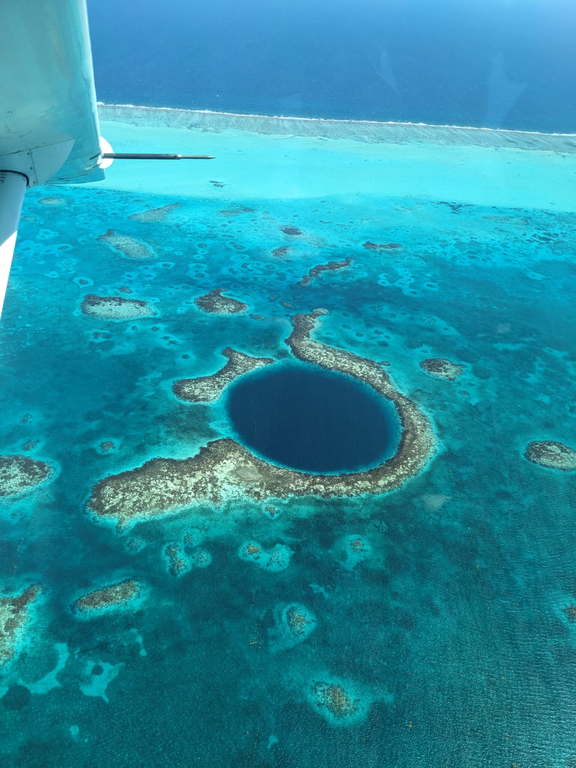 I got checked in with no problem and had to wait about 45 minutes for my tour to start. There was no more than 10 of us on the flight and I got to sit right behind the pilot. It was a pretty smooth take off. On our way to the Great Blue Hole we flew over Hol Chan and Shark Ray Alley where we snorkeled the other day . It took about 20 minutes to get to the Blue Hole. The pilot made several passes and made sure both sides of the plane got a good view. On the way back we also got a good look at Caye Caulker and a shipwreck. Overall I’m really glad I made the decision to do this tour. I really enjoyed it.