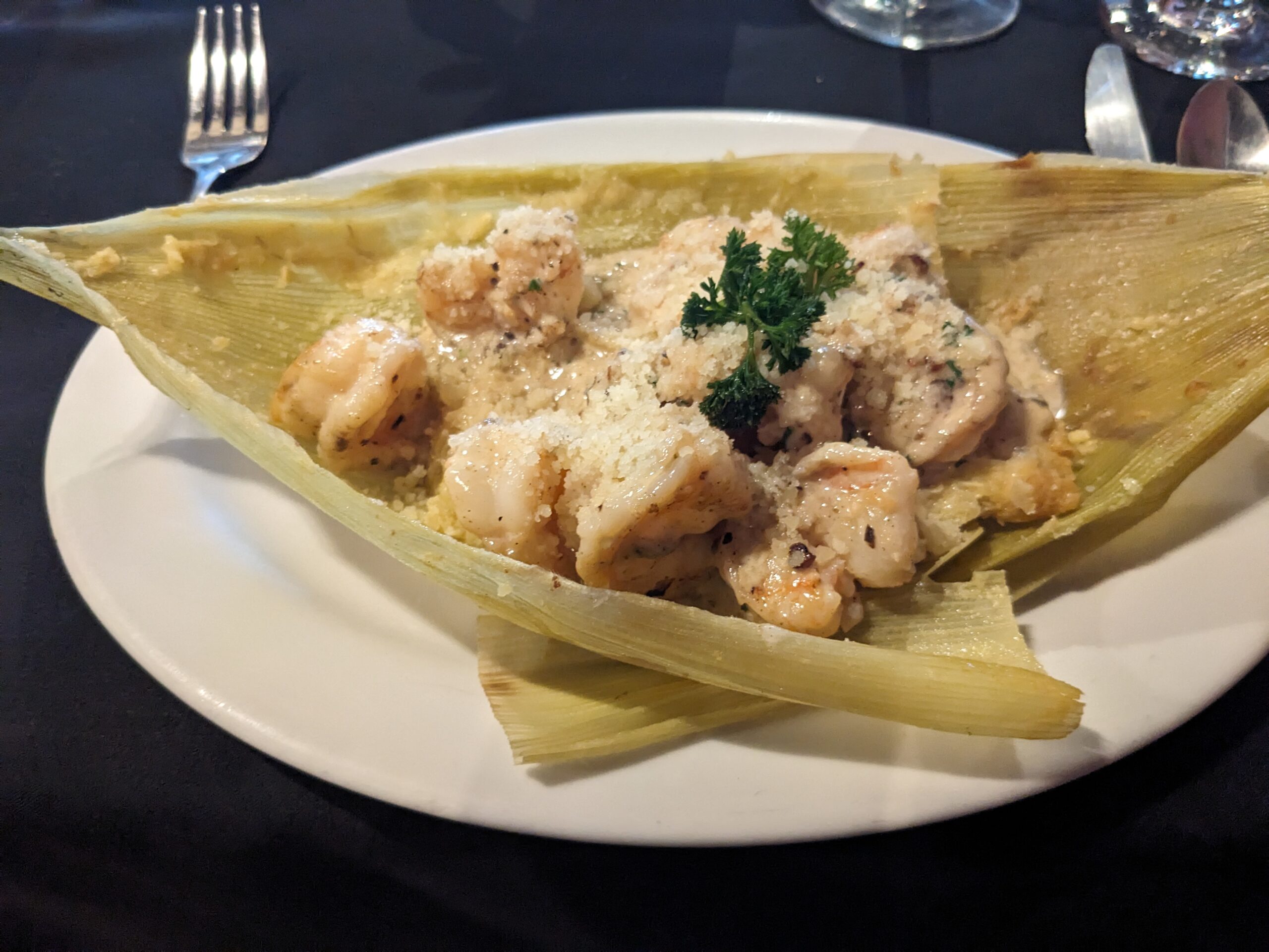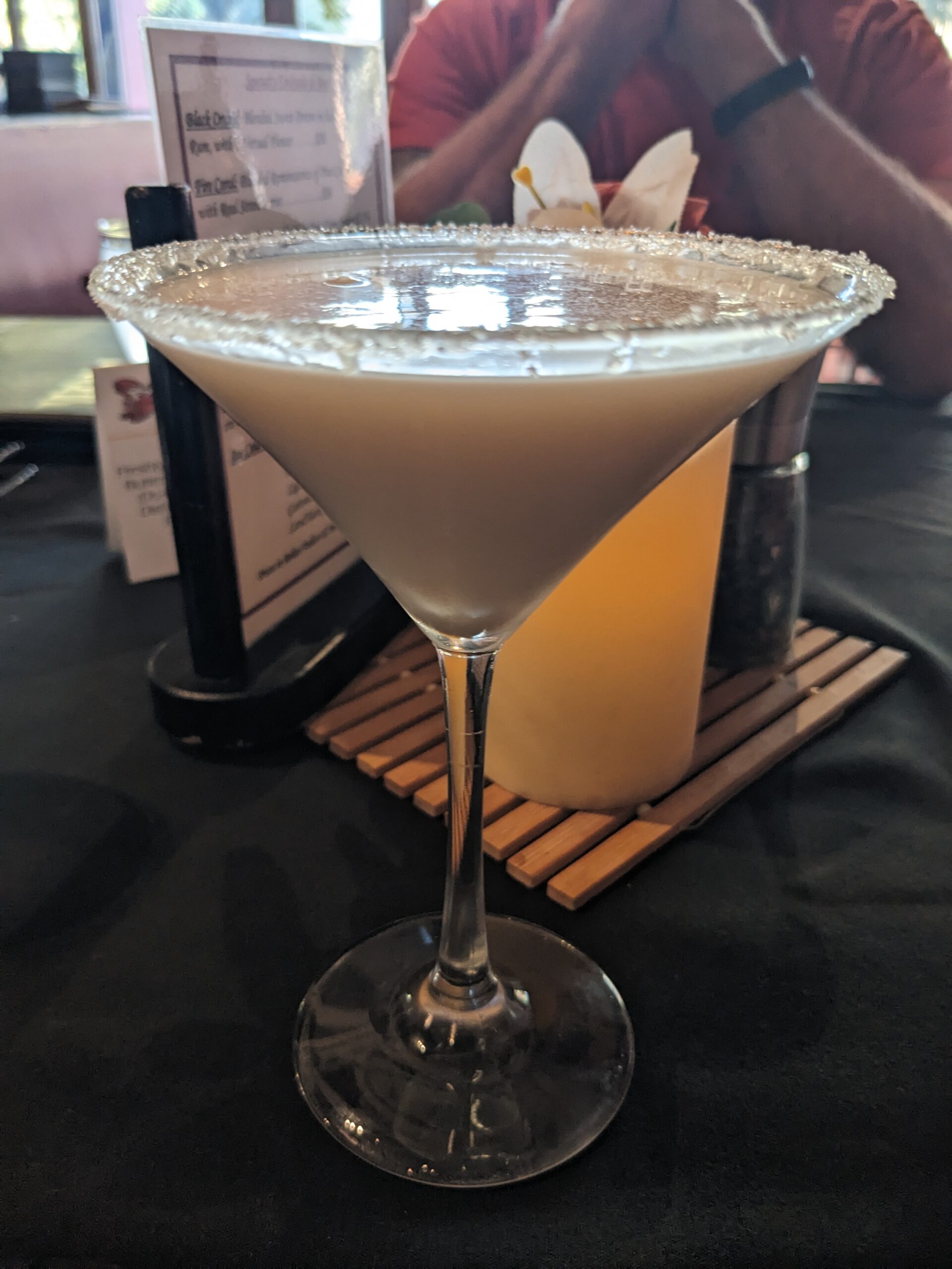 For dinner we went to the Black Orchid Restaraunt, which was the restaurant of where I found my first geocache in the caye. I had an excellent Key Lime Martini. We also had the creamy shrimp dip appetizer and I had the Dukunu Shrimp which is an authentic Belizean dish of shrimp in a cream sauce over sweet dukunu (pronounced du-kew-no, made from sweet corn). The dukunu has the consistency of polenta. My dish was outstanding . . . very good!