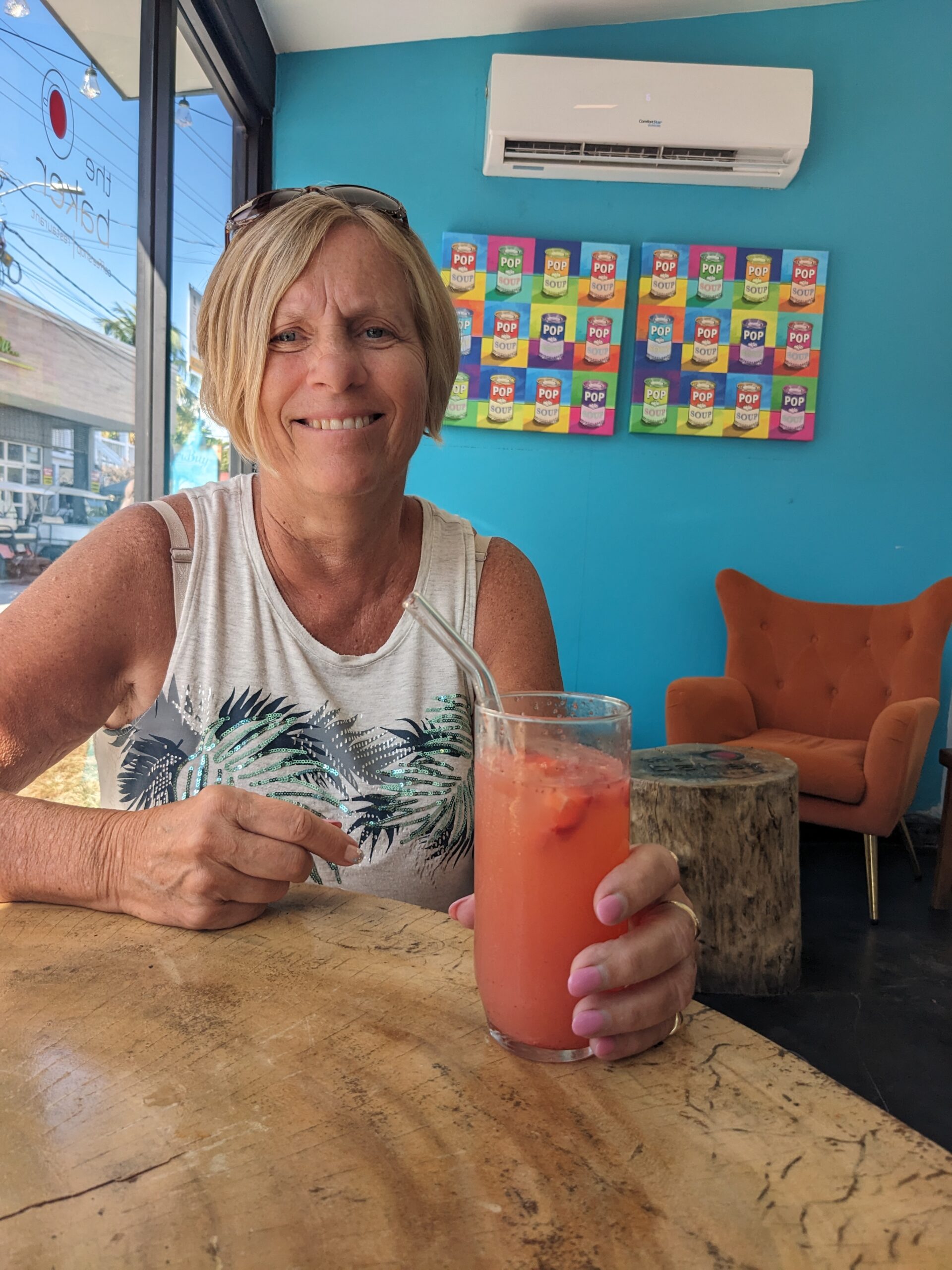 Upon leaving the beach we went to “The Baker” bakery/restaraunt that we have visited before. This is the place with the cool mural on the wall. Today I got the chicken nachos. They were outstanding!! Some of the best nachos I’ve had at a restaraunt ever! In fact, it is now almost 11:30p.m. and I still feel full from the great meal I ate at 3:00. The owner swung by our table many times and offered us to try some free drink concoctions they were making for a photo shoot. The first one had Bailey’s, Guiness, Condensed Milk and Nutmeg. I didn’t like that one so much. It had too much nutmeg in it. The second drink had strawberry, soda water, and mint and I thought that was very good. It is a drink I would order.