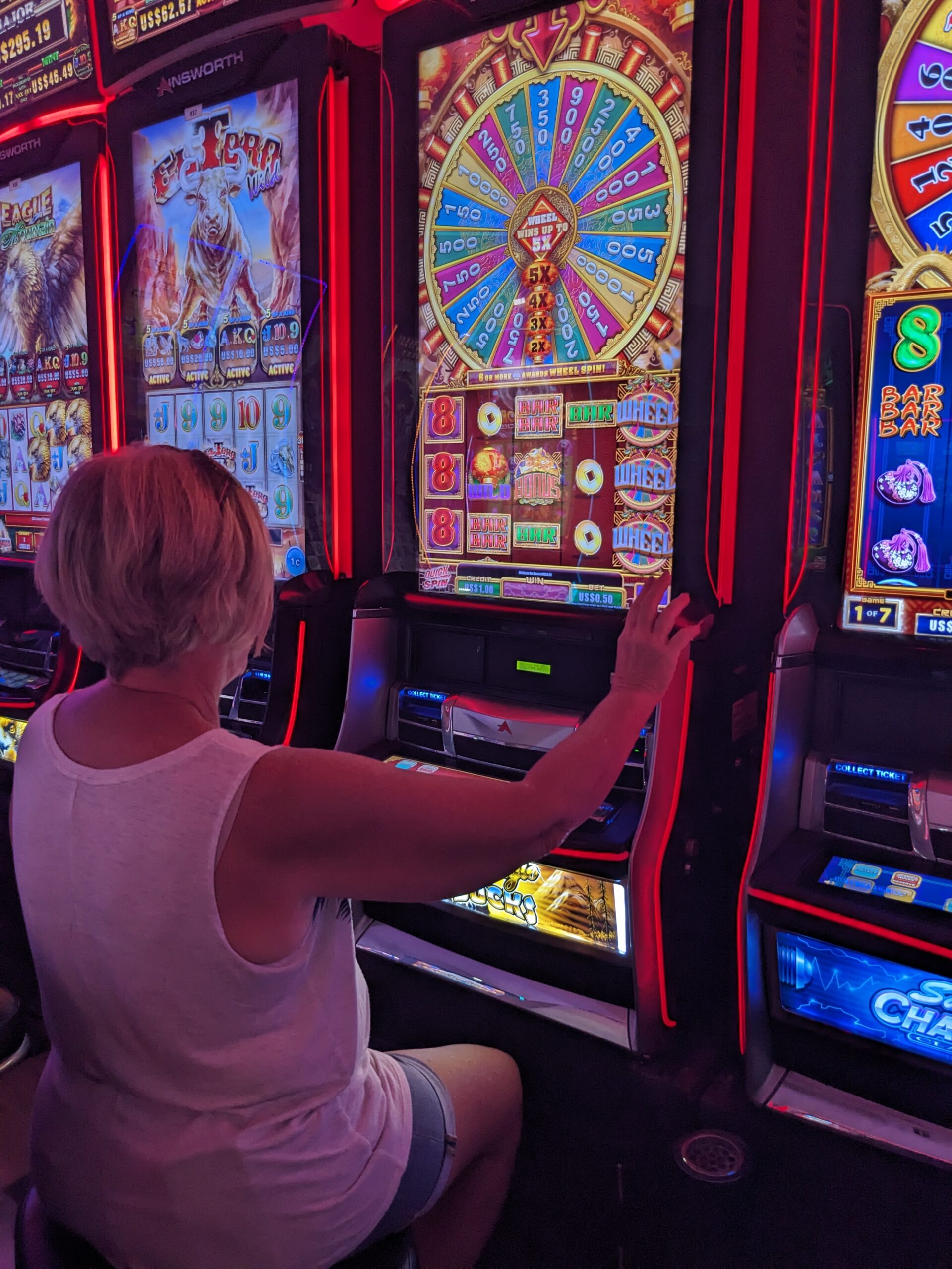 Having ate so much I definitely needed to go for a walk so Linda and I walked to get the last stop on the Adventure Lab. This is the one we tried to do the other day that took us down a road that the local told us we were in the wrong spot. Today we walked over there and went down the road right before the one we were at before and it didn’t take long before we got into the range for the Adventure Lab question to appear. It was a random question about Belize and not really specific to the area we were. I’m not sure why the owner of the Adventure Lab set the coordinates for that exact location. None-the-less I was happy to have been able to complete the Adventure Lab. From there we walked through town and we stopped at the tiny little casino. Linda put a couple bucks in a slot machine in honor of Dad, but luck was not on our side today.