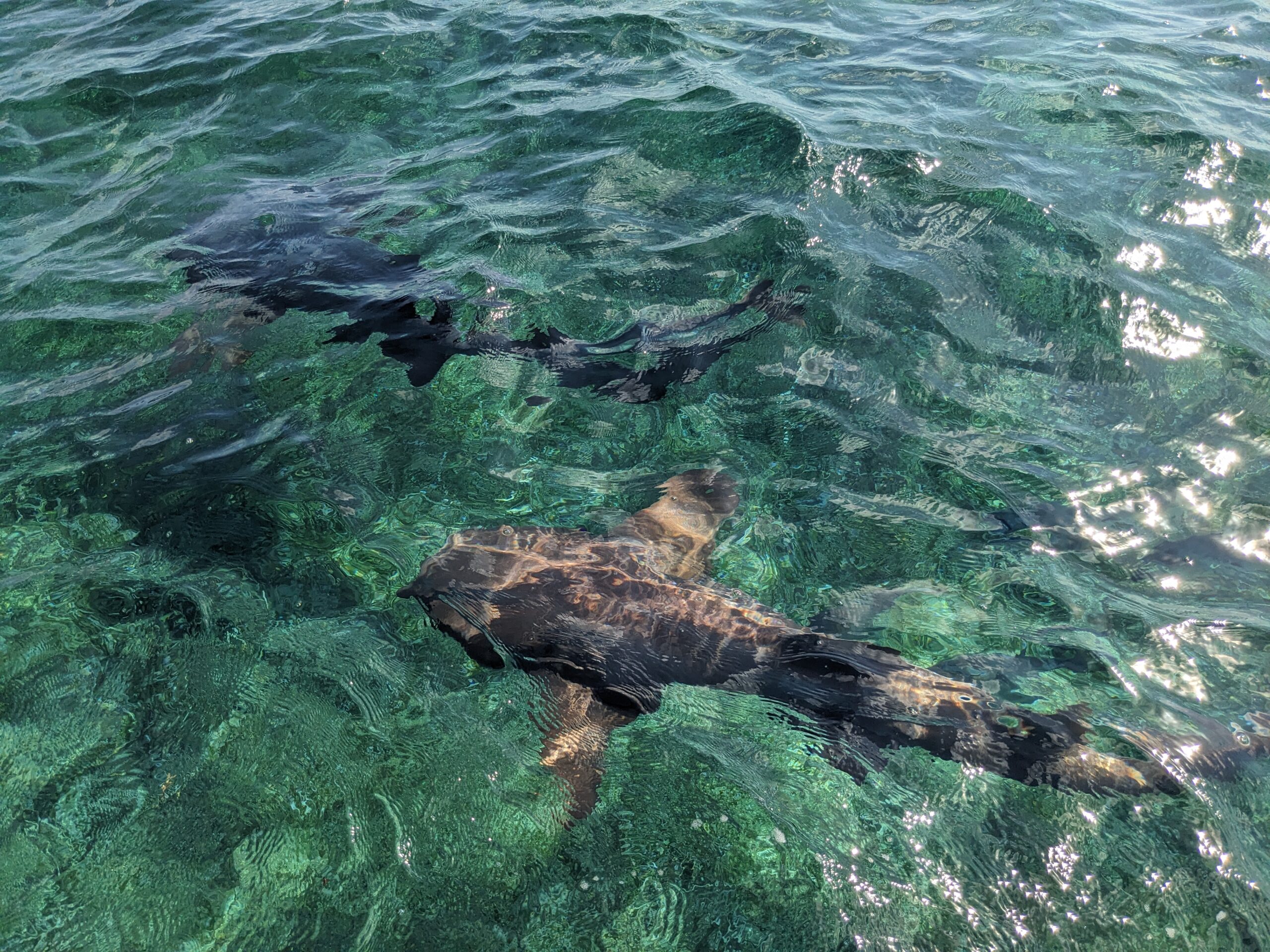 Back at the apartment I sat down by the pool and continued to read my book until we were ready to go on our snorkeling adventure to Hol Chan Marine Reserve and Shark Ray Alley. We were on a private tour but while snorkeling we did have to stick with our guide and follow him. The snorkeling was pretty good and I saw a couple of sea turtles and lots of different fish and coral. I didn’t see a sting ray but the rest of the group did. At Shark Ray Alley I was the only one to get out of the boat and snorkel with the nurse sharks. It was pretty neat! I enjoyed it quite a bit. The tour was stated for 3 hours, but because of the currents we finished it in 2 hours. At least that was the excuse our guide told us.